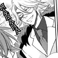 According to Motomi, Arbitro was a spoiled young man from a wealthy family. As a child, Arbitro witnessed his parents secretly kidnapping young boys and doing whatever they wanted with them, including beating and raping them. This led to his later obsession with making living "dolls." Arbitro was a researcher in Project Nicole. However, he worked in a different department than Motomi. Motomi stayed late one night and discovered Arbitro torturing a young boy in one of the surgical rooms. Motomi managed to stop him, and an investigation into Arbitro's activities was immediately undertaken. It was discovered that he had done the same to several other test subjects, and was immediately dismissed. Because of this, Arbitro holds a grudge against Motomi for ruining his career. He changed his style, going from a black-haired, glasses man to a blonde-haired fashion disaster and was reduced to selling Line for profit in Toshima. Arbitro first appears when Akira, Keisuke, and Rin go to the Palace to register Keisuke for Igura. Rin talks about his penchant for perverted and questionable things, and the Palace interior confirms Rin's words. When Arbitro appears, Akira thinks he's "the king of bad taste." Arbitro briefly ogles them before heading in to talk to the Igura entrants. He's seen again later on when Keisuke returns to the Palace to actually join Igura. Keisuke and Akira are with Motomi the second time, and the sight of Motomi enrages Arbitro. A scene shortly after that shows Arbitro reminiscing about how he first "fell in love" with Kau, and how Motomi "ruined his life." The next scene featuring Arbitro shows him selling one of his "dolls" to one of his business associates, and receiving the fresh material (an Igura participant who lost) earlier delivered by the Executioners. Akira drinks some of Arbitro's drugged wine and falls into his clutches. Arbitro chains him up in the torture chamber and makes him into a masterpiece so he can be Kau's "mate." The only route where Arbitro does not have a significant appearance is the "true route" (Nano). Arbitro has the executioners bring Akira to the Palace. While there, Arbitro explains about Akira and Keisuke’s past as experiments at ENED. This route has a choice that leads to Arbitro’s Ending. Later on Keisuke’s route, Akira and Keisuke return to the Palace for information about the imploding Toshima. They find Arbitro and his men preparing to abandon the city to the impending civil war and to the undiluted Line that has flooded the market. Motomi storms the Palace and demands answers from Arbitro. He gets to Arbitro by threatening to smash his statues, and they discuss ENED and Project Nicole. Motomi also has a flashback to the night where he discovered Arbitro creating "art" with one of the young boys in Project Nicole. Rin steals Akira’s tags to challenge Il Re, and Arbitro offers Akira the chance to fight in the wounded Rin’s place. Arbitro oversees the battle in the coliseum from his private box. Shiki delivers a suitcase of Line to the Palace and talks to Arbitro about Vischio. Later, Arbitro and the Executioners crash the showdown between Emma, Gwen, Akira, and Nano. In both of Shiki’s bad ends, Arbitro is decapitated by Shiki. In Shiki's Good Ending, his orders are thoroughly ignored by his Executioners, and his ultimate fate is unknown. Arbitro makes his first appearance in episode 3, as Keisuke enters Igura. He quarrels with Motomi, and after they're left alone, asks Keisuke if he's sure this time before he lays out the rules of Igura. Later in the episode, Gunji and Kiriwar report to Arbitro about tag thieves, and Arbitro orders them to hunt down the rule breakers. Arbitro's next appearance comes in episode 5, as he receives a case of Line from Shiki. Shiki threatens Arbitro in Episode 10 He is seen in episode 7 investigating the massacre at Meal of Duty, and determines from the description of what happened to Takeru that Project Nicole is involved. In episode 8, Arbitro explains the nature of the experiments to Akira and tests his blood for the anti-Nicole. Arbitro accepts Rin's tags in episode 9, oversees the Il Re battle in episode 10, and observes Shiki and Nano's fight in episode 11. He is last seen alongside Gunji, Kiriwar and Kau in episode 12. Arbitro's appearances in the manga primarily concern the business of Vischio. Arbitro has a keen understanding of the role Il Re plays in his empire. In chapter 1, Aribtro first appears when reprimanding Gunji and Kiriwar. Arbitro asks them if there’s any participants that can challenge Il Re, and has to explain that they need challengers to preserve the mythology of Il Re. In chapter 3, after Gunji has attacked Shiki, Arbitro fervently denies giving the order. According to Arbitro, he and Shiki are partners, although Arbitro does admit to some jealousy over Shiki’s direct connection to Line. He rhapsodizes about doing “God’s will" and coyly wonders if he too shall be blessed someday. In chapter 9, Shiki wakes Arbitro in the middle of the night to discuss the information Arbitro has been selling. Shiki insults him and tells Arbitro his power is an illusion. Before Shiki can leave, Arbitro argues that he’d never sell Line to ENED, because of his past disgrace. Shiki questions him about the connection between ENED and the military, and states that he’ll kill anyone seeking Line. Arbitro takes his words in a positive way, because his staff is busy with Igura, but Shiki cuts down his enthusiasm by reminding him that Shiki doesn’t care about Vischio at all. He leaves after telling Arbitro to keep the Executioners out of his way. Later, Arbitro tries to curry Shiki’s favor by emphasizing their past meeting at a formal event, but Shiki hardly remembers it. Shiki threatens Arbitro while Kiriwar is absent, causing Arbitro to soil himself in fright. Arbitro swears revenge after this incident. Chapter 7 shows Arbitro concerned over the 50% Line being circulated among parti
