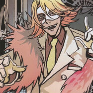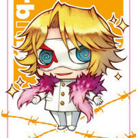 Arbitro (アルビトロ, Arubitoro) is the head of the narcotics organization Vischio. Arbitro is a thoroughly pretentious and theatrical person. His taste is remarkably gaudy and sadistic, and he often tells people they don't understand his "art." He is an extreme sadist; he keeps a room full of young men for his pleasure's sake, and his Palace is full of statues and paintings of suggestive poses of nude boys. It appears Arbitro suffered from psychological trauma as a child, which is the source of his fetishes and may be the reason he lacks a sense of morality. He is very self-centered, and views the drug trade of Line and the running of the violent game of Igura as a business. He does not hesitate to abandon Toshima when the city falls into chaos. Arbitro has long blonde hair that flicks out at the sides, blueish green eyes, and is about 181 cm tall. He wears an extravagant double-breasted white suit with a red shirt and lime green tie, and cradles a fuchsia feather boa around his shoulders. He always wears a white party mask with a red design around the right eye on his face. Arbitro used to be a scientific researcher, and as such has knowledge about many topics of science, most specifically those relating to the effects of drugs on the body. Arbitro is skilled at psychological torture and conditioning.